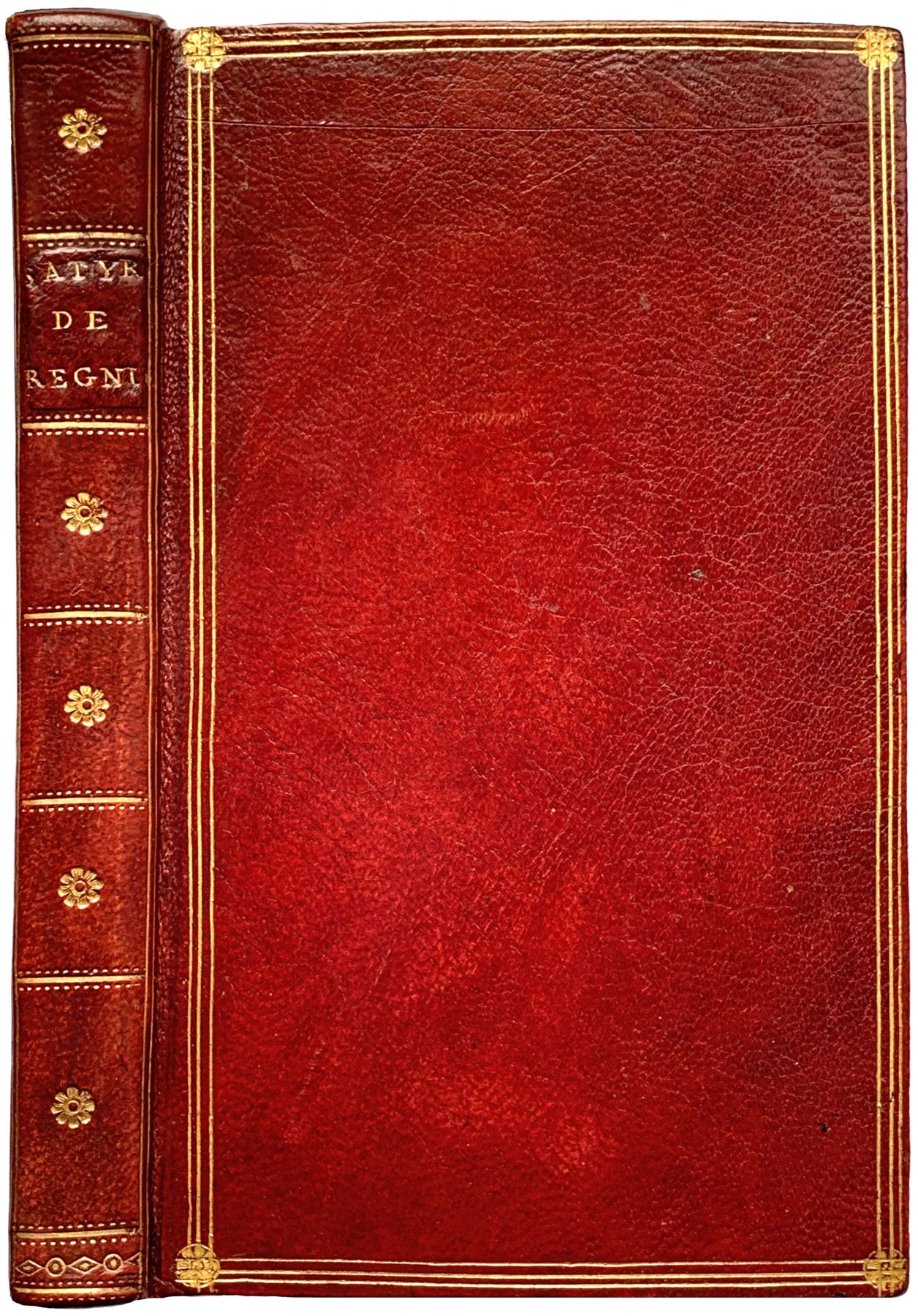 REGNIER Mathurin. Les Oeuvres de Mr Régnier contenant ses Satyres et autres pièces de Poësie. Amsterdam, Estienne Roger, 1710. In-12 [152 x 89 mm], maroquin bordeaux, triple filet doré encadrant les plats, dos lisse orné, roulette dorée sur les coupes et à l’intérieur, tranches dorées (Derome, non signée)