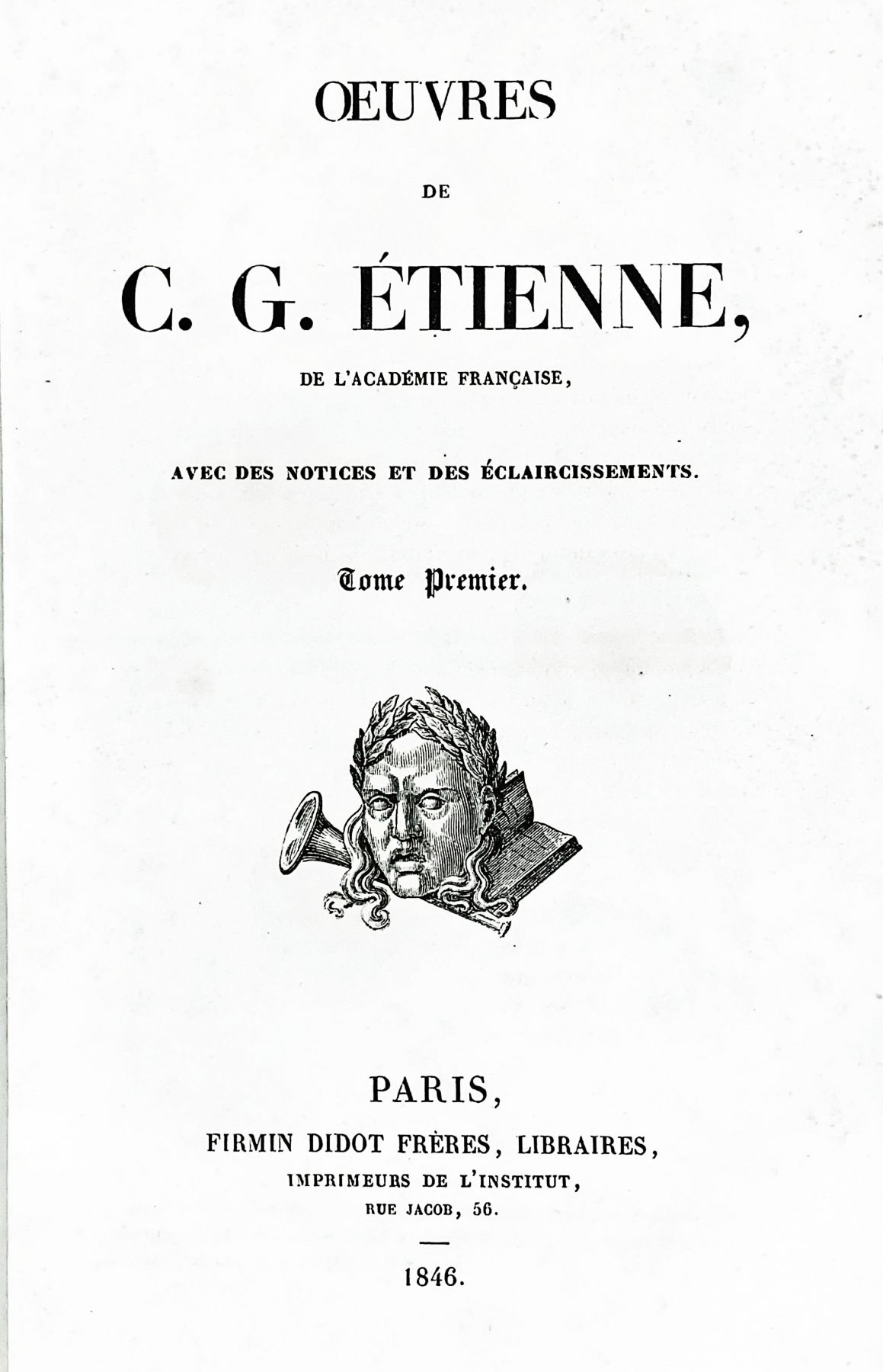 ETIENNE Charles-Guillaume. Œuvres. Avec des notices et des éclaircissements. Paris, Firmin Didot, 1846-1853; 5 vol. in-8, demi-veau de l’époque, dos à nerfs orné, pièces de titres et de tomaisons de maroquin bordeaux, tranches marbrées. Rousseurs.