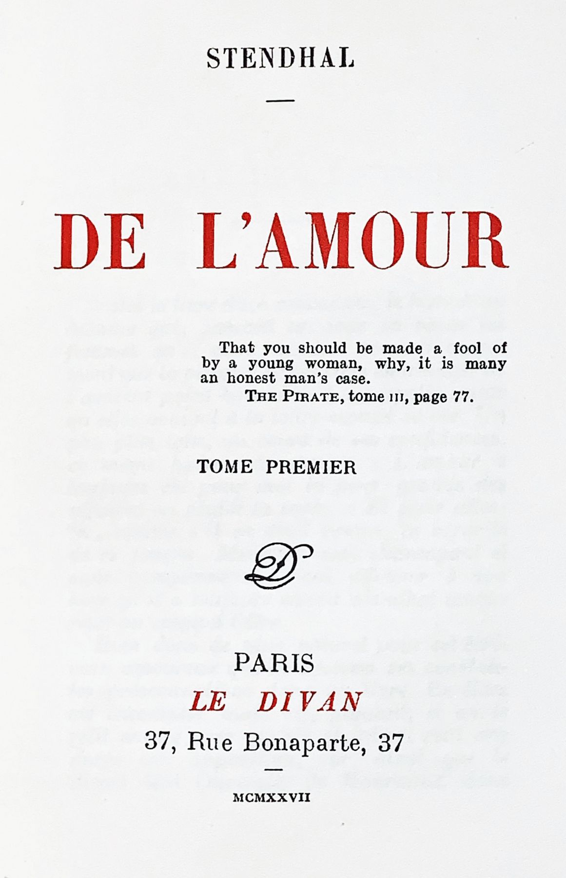 STENDHAL Henri BEYLE, dit. Œuvres complètes. Etablissement du texte et préface par Henri Martineau, sauf pour les volumes «Idées italiennes...» dont l’appareil critique et de D. Plan avec une préface de Henri Martineau, et pour les «Lettres à Stendhal». Paris, Le Divan, 1927-1937; 83  volumes in-16, brochures originales, couvertures imprimées. Exemplaire numéroté sur vergé Lafuma à la forme.