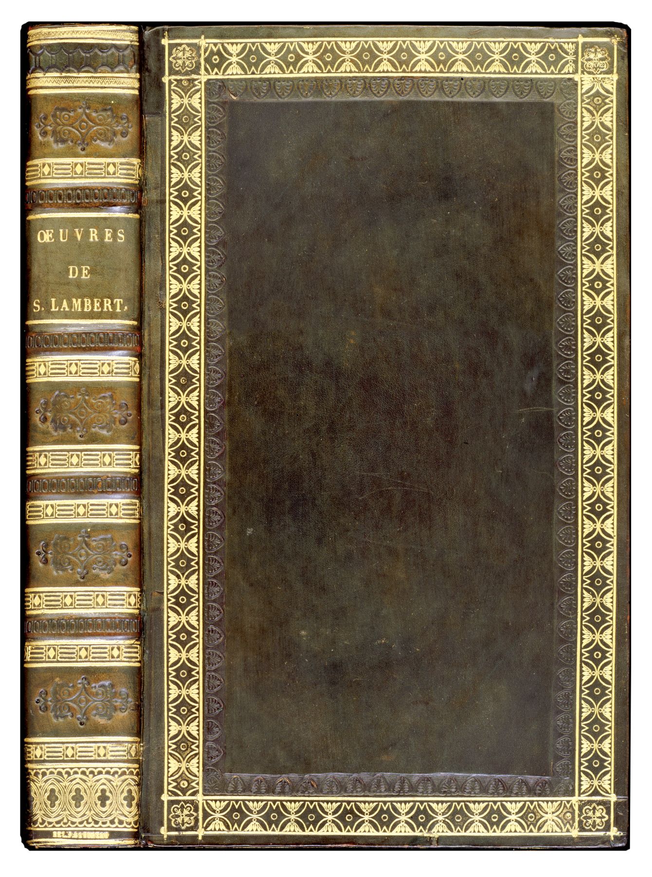 SAINT-LAMBERT Jean-François, marquis de. Œuvres. Paris, Janet et Cotelle, 1823. In-8 [209 x 123 mm], veau vert bouteille, dos à nerfs orné et doré avec fleurons et roulette à froid entre et sur les nerfs, double roulette dorée en encadrement sur plat avec fleurette aux intersections et à froid, double filet doré sur les coupes, roulette intérieure, tranches dorées, (P. Gaudreau). élégante édition de l’imprimerie Didot. Les Saisons, poëme - Le Printemps. - l’été - l’Automne. - l’Hiver. Suivie de: Pièces fugitives et de: Contes - Ziméo, l’Abenaki, Philips de Sara, Fables Orientales. Saint-Lambert joua un rôle de premier plan au XVIIIe siècle, aussi bien par ses écrits que par ses liaisons célèbres avec Madame Du Chatelet, Madame d’Houdetot, ses contacts avec Rousseau, Stanislas, etc.