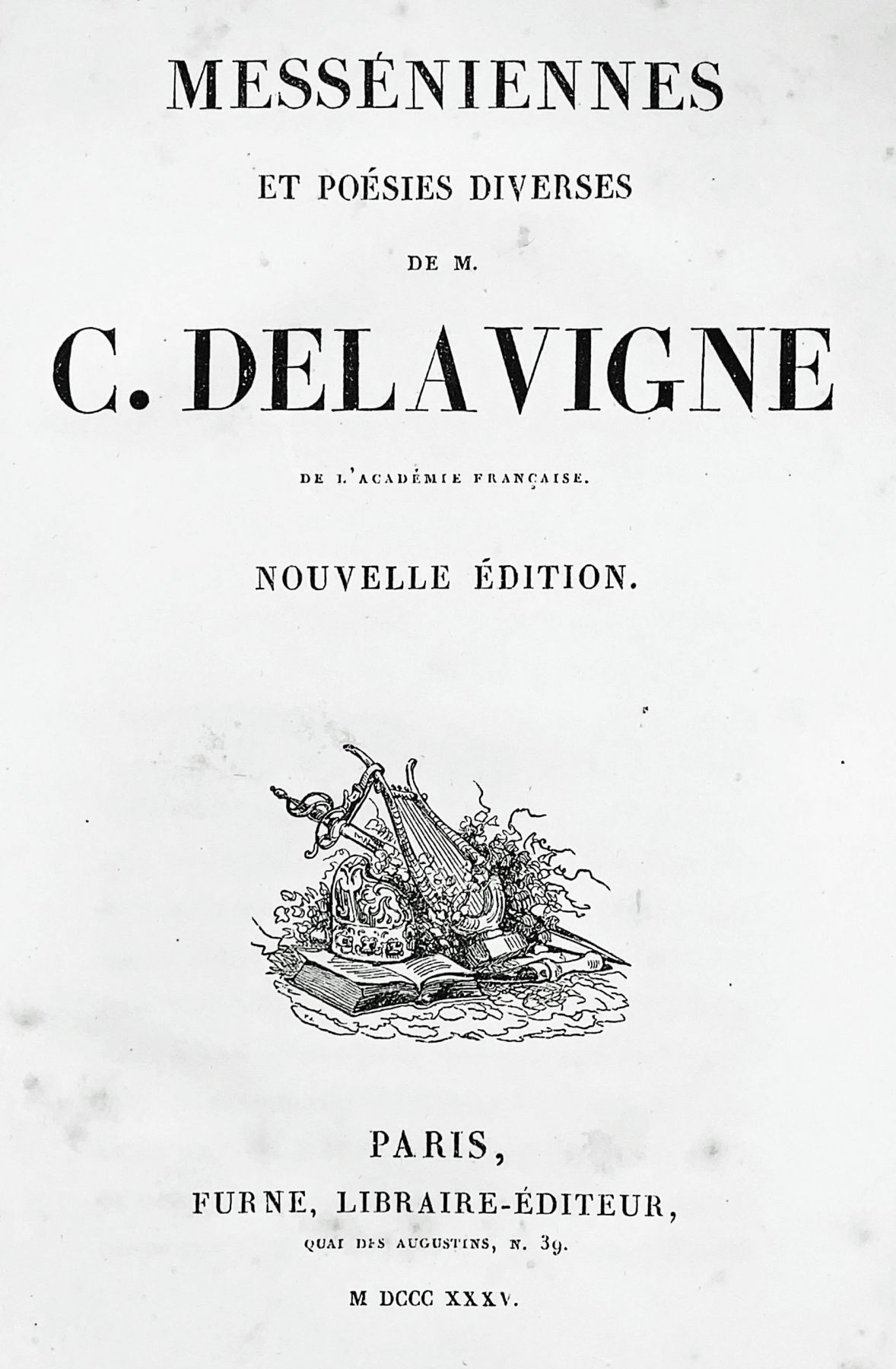 DELAVIGNE Casimir. Théâtre, puis Messeniennes & Poésies diverses. Paris, Furne, 1833-1835; 5 volumes dont 4 de Théâtre grand in-8, demi-veau brun, dos à faux nerfs orné.
