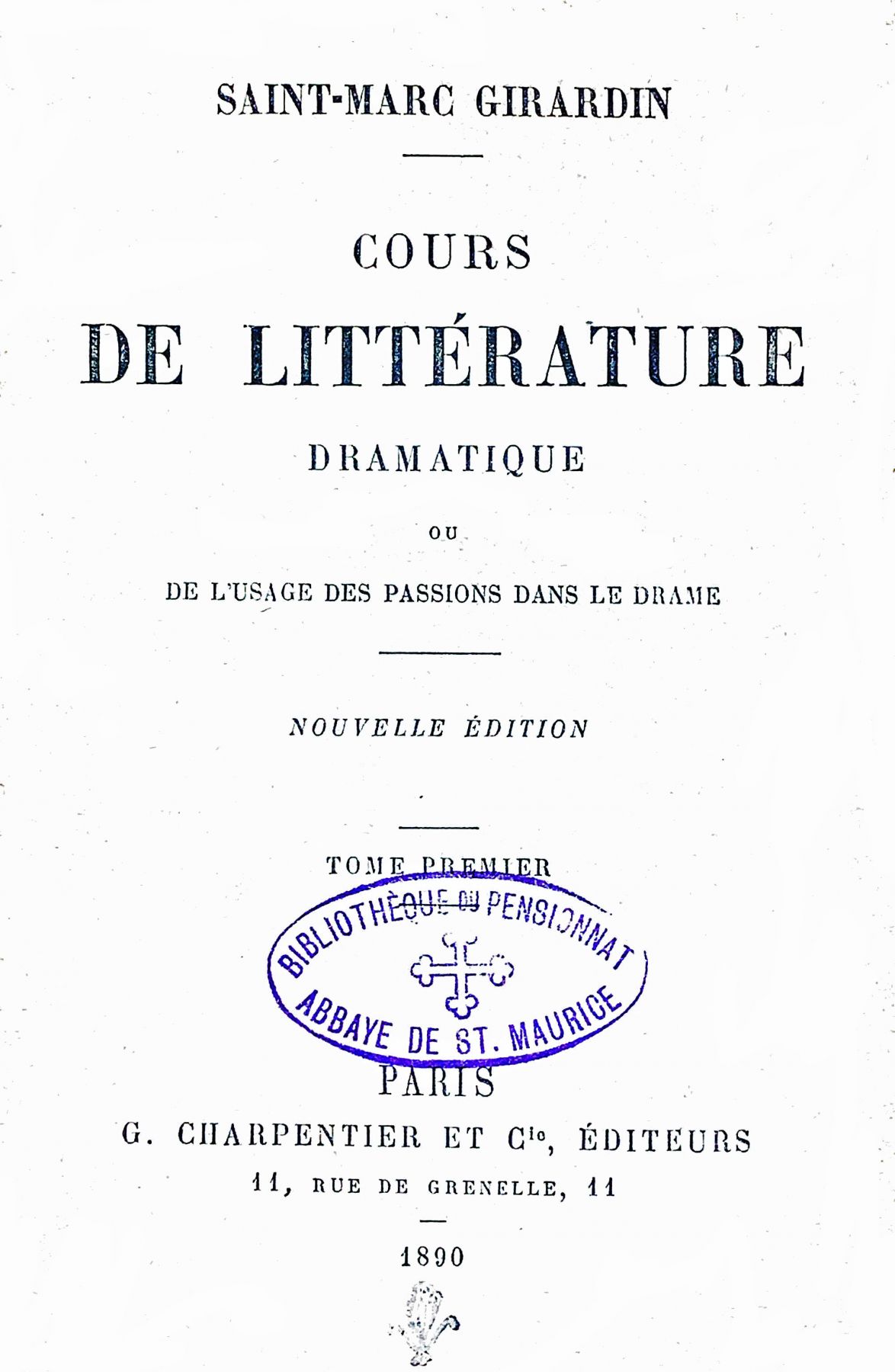 SAINT-MARC GIRARDIN. Cours de littérature dramatique