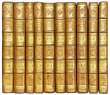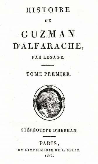 LE SAGE Alain René. Oeuvres choisies - Stéréotype D’Herhan. Histoire de Guzman d’Alfarache (2 vol.). - Histoire de Gil Blas de Santillane (4 vol.). - Le Bachelier de Salamanque ou Mémoires et Aventures de Don Chérubin de la Ronda (2 vol.). Le Diable boiteux, augmenté Des Béquilles du Diable Boiteux (2 vol.). Paris, Chez H. Nicolle, et chez A. Belin, 1813, 10 volumes in-12, demi-veau blond de l’époque, dos à nerfs orné de filets et de fleurons dorés, titre et tomaisons dorés.  Illustré d’un portrait de l’auteur en frontispice.