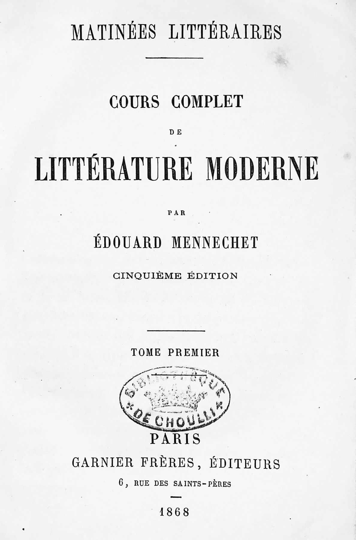 MENNECHET Edouard. Cours complet de Littérature moderne