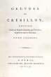 CREBILLON Père. Oeuvres de Crébillon. Paris, Didot le Jeune, 1797. 2 volume in-4 [230 x 142 mm], maroquin rouge à long grain, plats ornés au centre d’un listel doré formant losange encadré de filets dorés, dos lisse richement ornés de faux-nerfs mosaïqués de maroquin vert, de croisillons et de fleurons dorés, doublure et gardes de tabis bleu, double roulettes intérieures, tranches dorées (Reliure de l’époque).